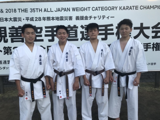 国際親善空手道選手権大会で大健闘‼ 2018年5月2日 鈴木道場 2018年4月21日(土)22日(日)、 東京体育館において 国際親善空手道選手権大会が開催され、 鈴木道場からは、櫻井恵太(中3)川島直斗(中2)、渡邊倖匡(小3)、福田颯馬(小1)の4名が選ばれ出場しました。 数か月に渡り強化練習に取り組み、大健闘しました。 先生方、ご指導いただきありがとうございました。
